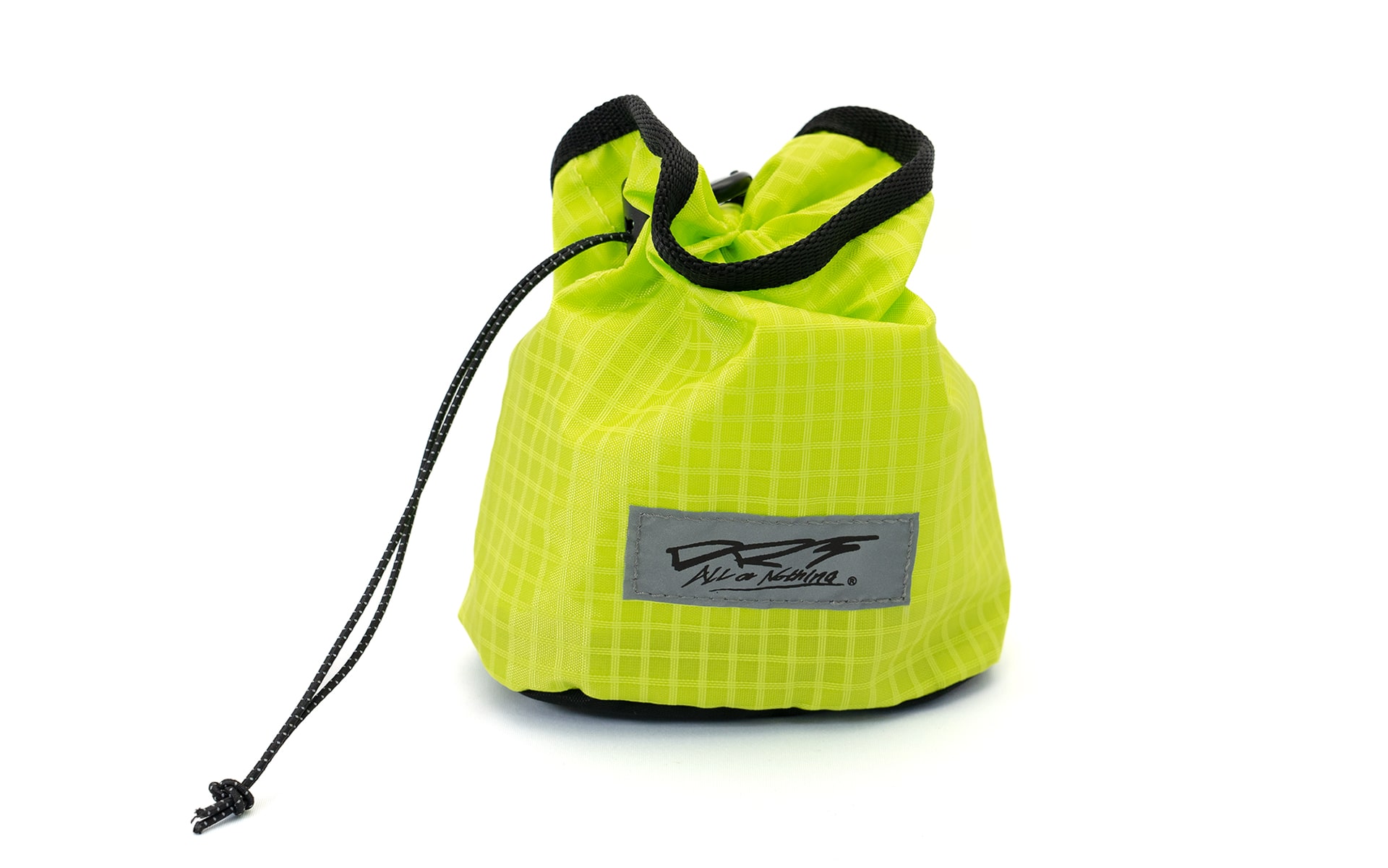 クライミングで使われているチョークバッグをベースにDRTカスタム。釣りをしている際に出るラインクズやパッケージ類などを入れておけるポーチ。内側は防炎素材になっているので煙草の吸い殻を入れても安心です。リップストリップナイロン。リフレクターネームタグ。防炎仕様。カラビナ付属。