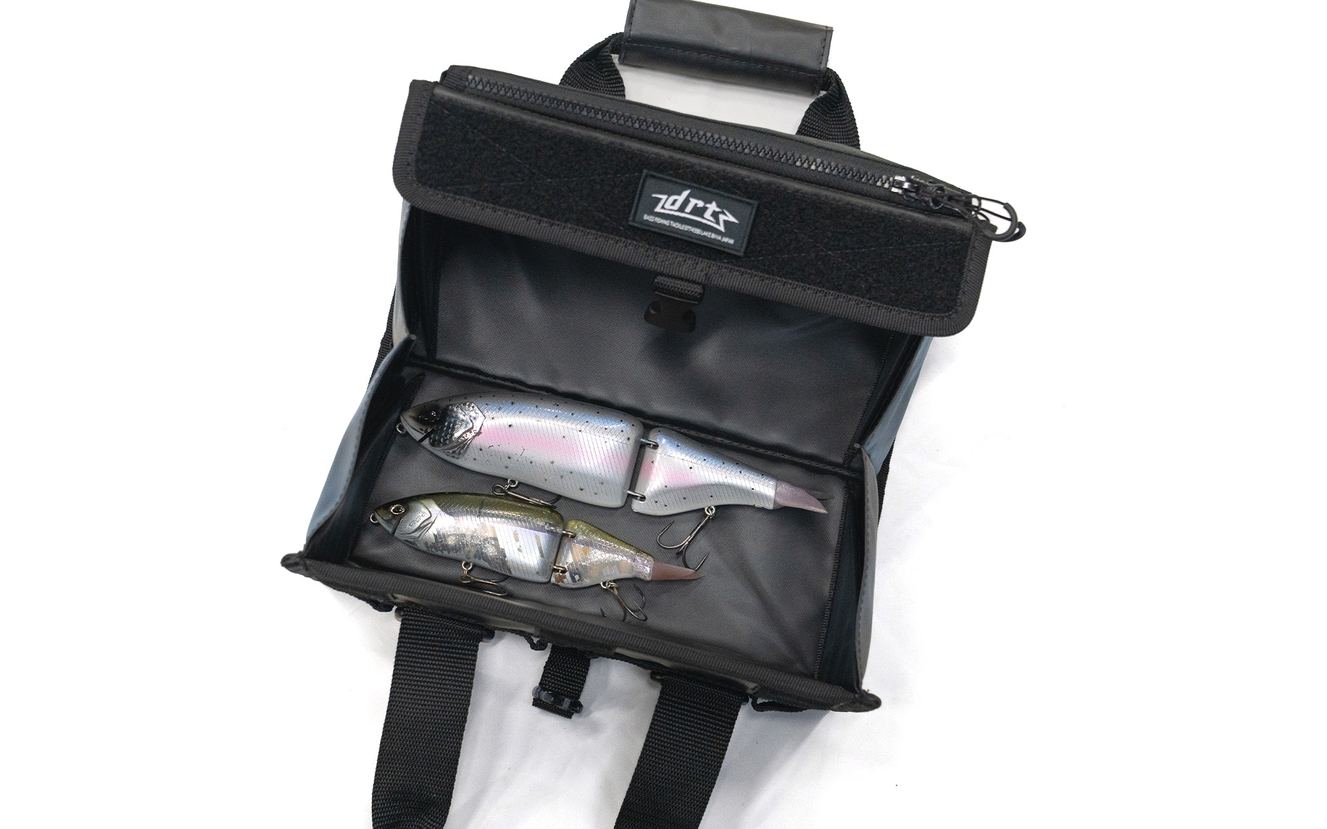 職人さん御用達SK11製の”PACATTO BAG”を釣り仕様にカスタム別注。ターポリン素材〜セミハード仕様のボックス構造により、ルアーを直入れしてもフックが引っかかりにくく、そのまま放り込んで収納することが出来ます。天面にはポケットを配置し、小物の収納も可能です。各所にDカン~モールシステムを装備。ビッグベイト・ジャイアントベイトの収納にも十分対応できるサイズ感となっており、釣りだけでなく様々なシーンで活躍します。