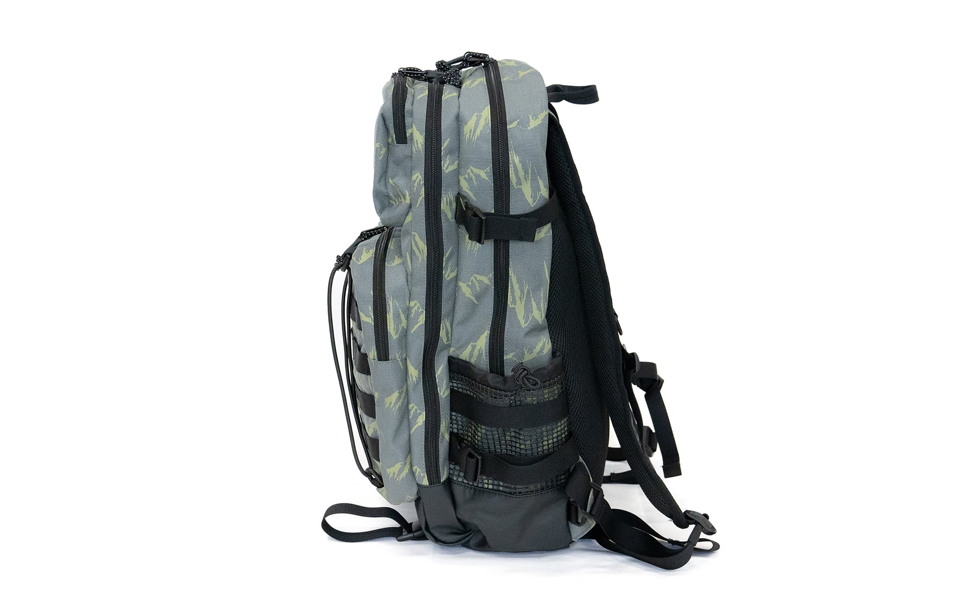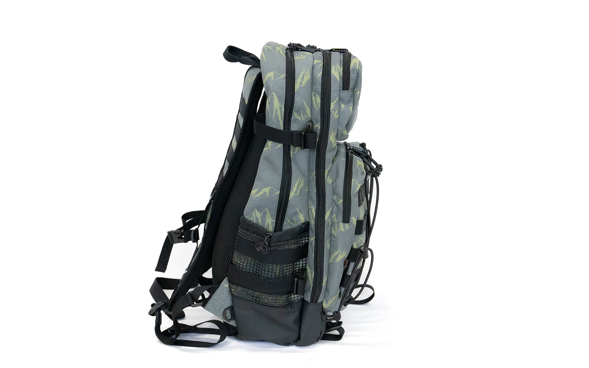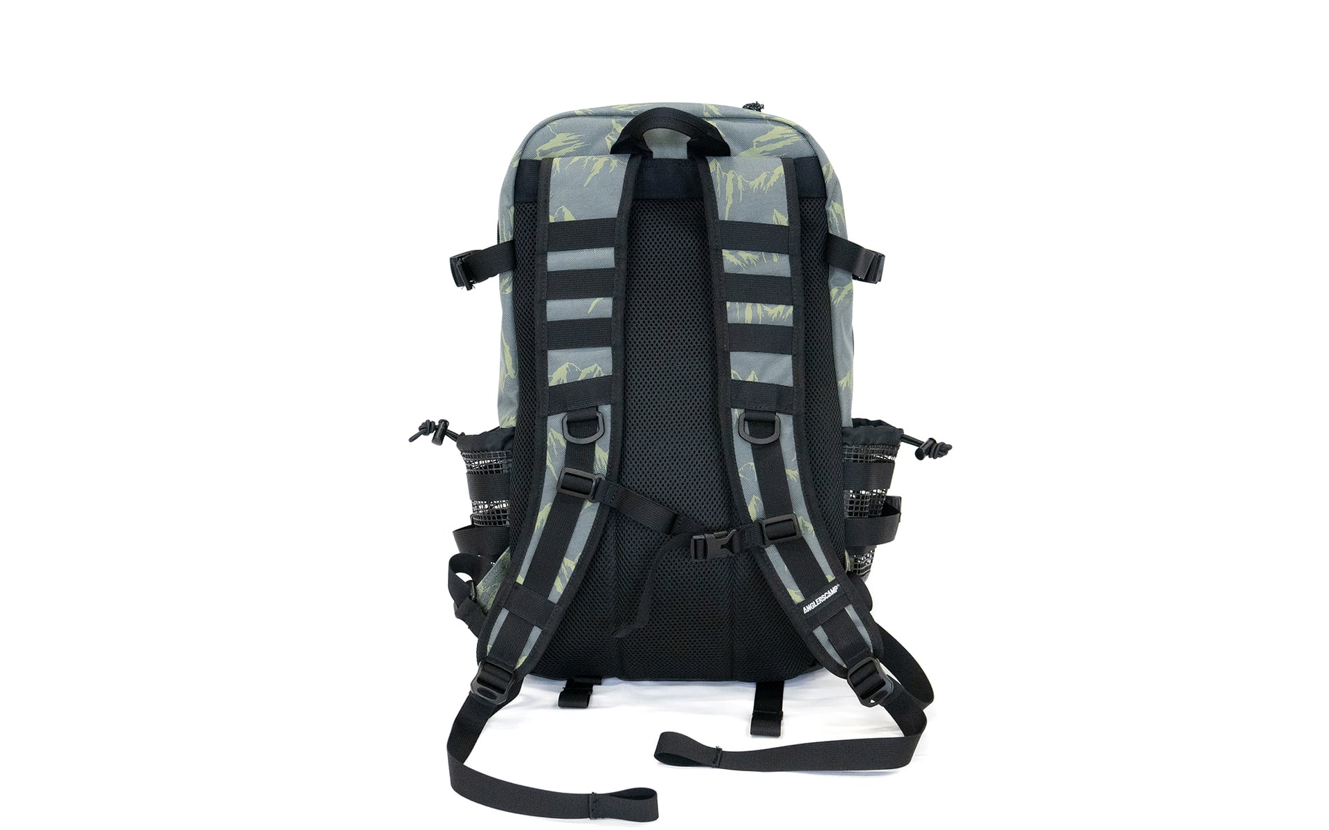 街~釣りに、ちょっとした遠征まで使える大容量バックパック。生地はCORDURA1000D採用。メインの気室には大型のタックルボックスはもちろん遠征時のウェア関係も問題なく収納可能。ショルダー部分のクッションは極厚で長時間使用の疲労も軽減します。モールシステム、各所にDカンを配置しカスタマイズ性を持たせています。ボトムはターポリン生地を採用し多少の雨でも気にせず使用出来ます。
