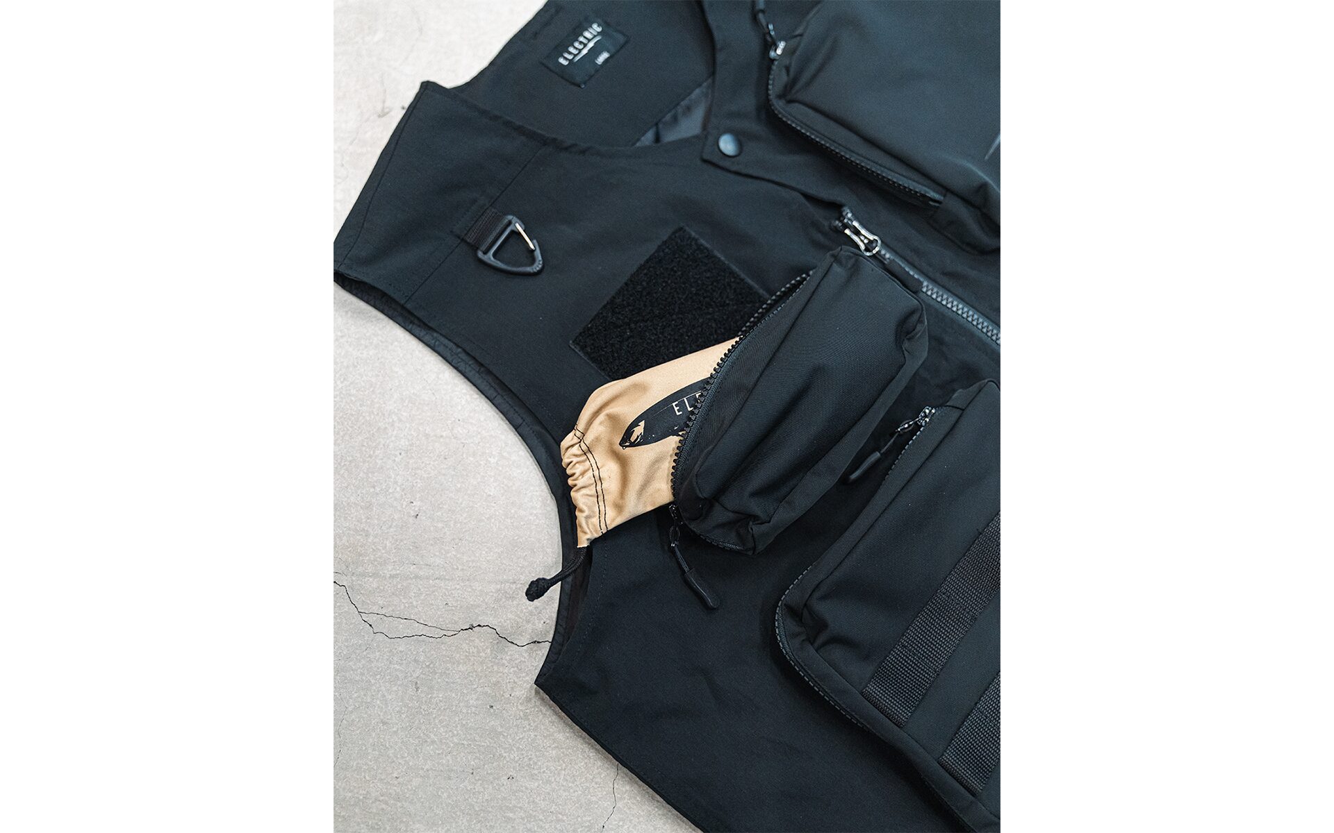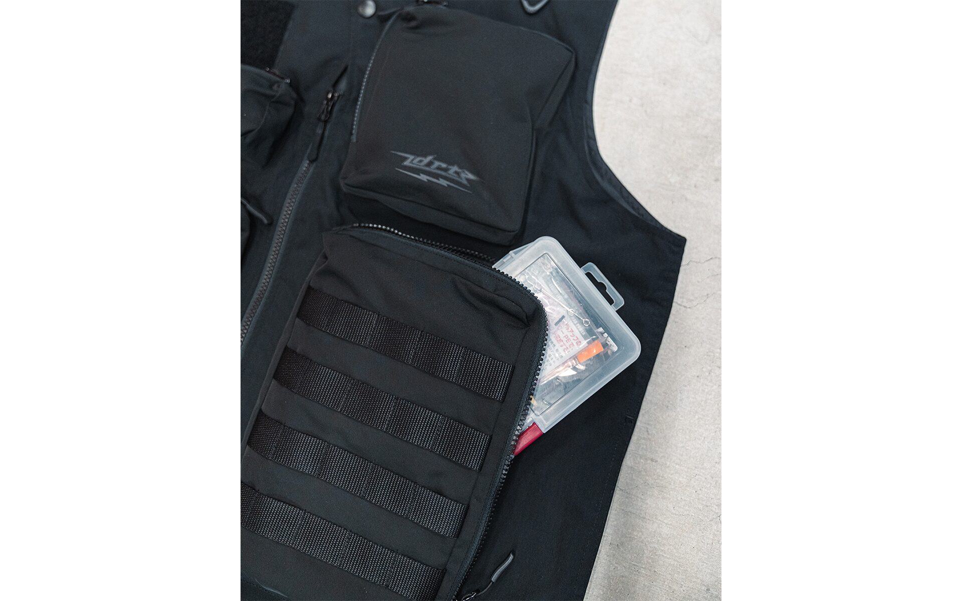 各所収納ポケット、リップストップ生地を採用したタクティカルベスト。前面はサングラスルーム〜大型ポケット〜背面ポケットなど、収納容量は多く様々なアウトドアシーンにフィットします。