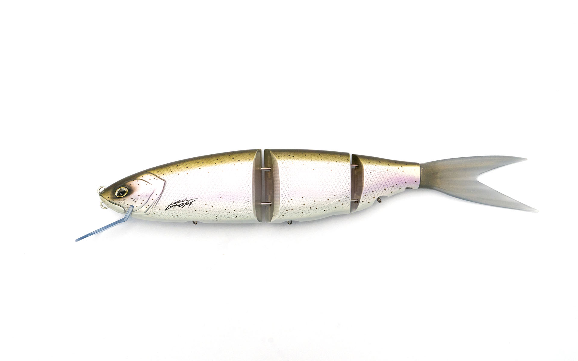 「操作できるベイト」デカバスを引き寄せ続けるKLASHシリーズの最大サイズGHOSTは330mmオーバーにして軽快な操作性を徹底追及。KLASHシリーズ最多のセッティング幅で、セッティング次第で 様々な状態のベイトフィッシュへと変化します。ジャイアントサイズならではの集魚力はもちろん、操作性とフッキング性能~フックアイに強化ローリングスイベルを採用したことによる圧倒的なバラし辛さは狙いの獲物との距離をさらに縮めることができます。表層~ボトムまで、泳層を自在にできリップイン仕様では最大6mの潜行深度を誇ります。フロントボディ上部のホールによる背針仕様、ジョイント制御パーツによるアクションの変化など、今後も進化していく可能性を秘めています。