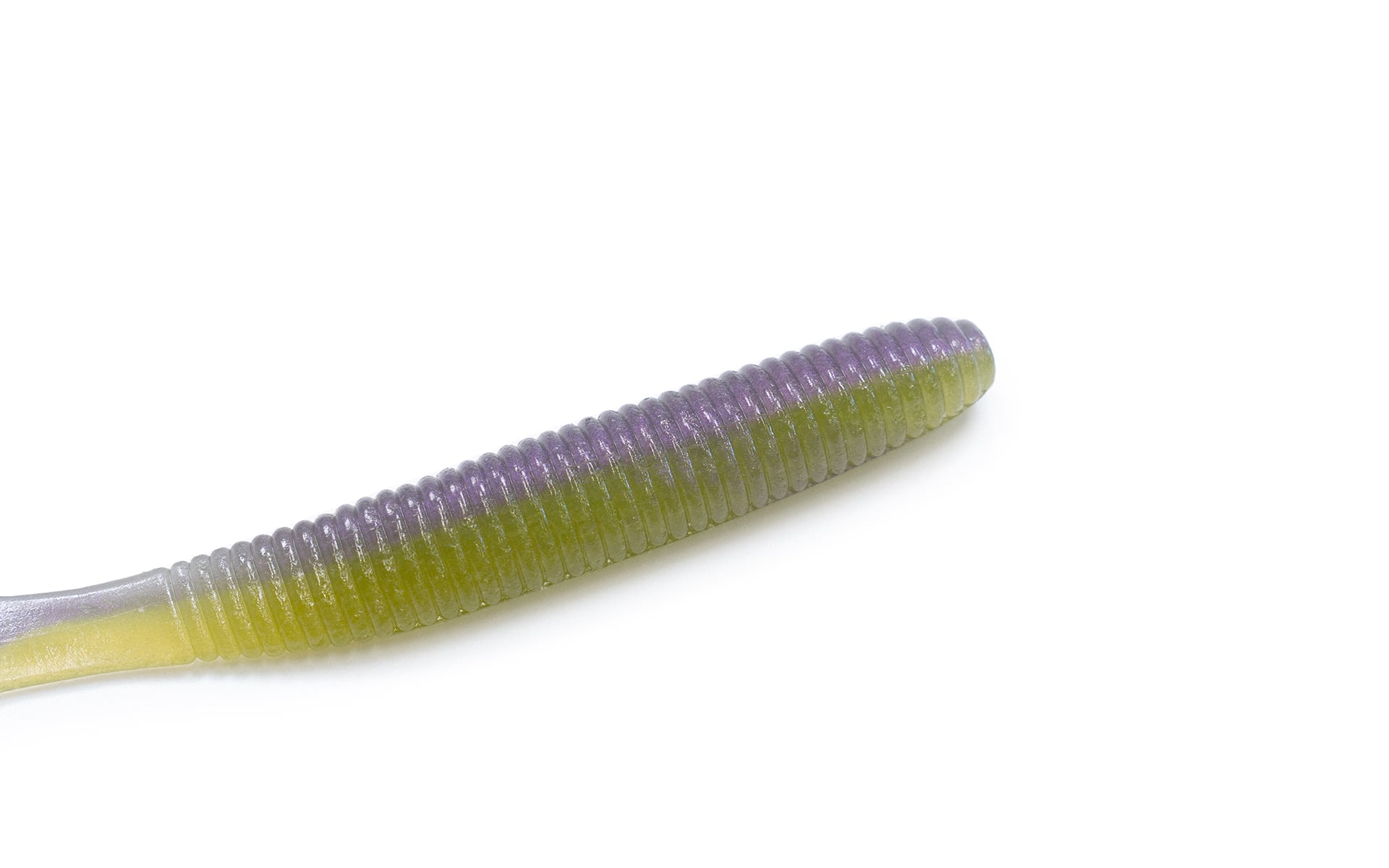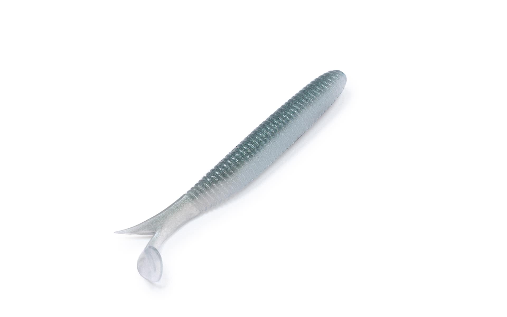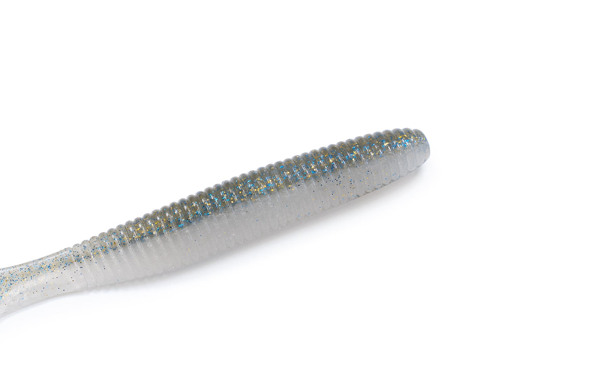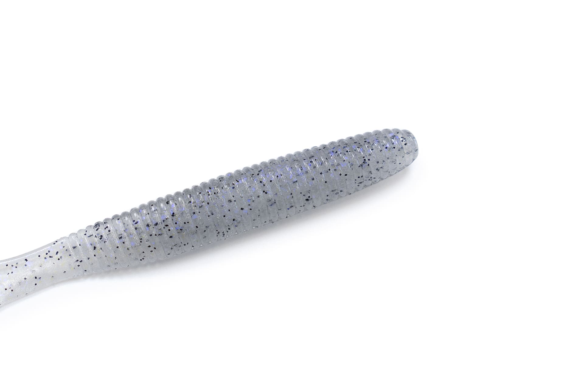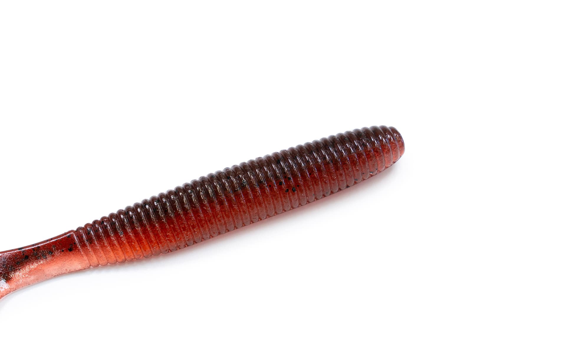 ジグヘッド、ノーシンカー、ウェイテッド。基本巻くだけ。ジグヘッドのシェイクを織り交ぜたスイミングでは後方テールがブレーキとなりロール強で移動距離を抑えてスイミングさせる事が出来ます。耐久性とアクションを考慮した硬度。ワーム単体で10gのウエイトがあり、飛行姿勢を考慮したボディデザインにより飛距離も抜群。チェイス〜最後の喰わせのトリガーとなるVテール+ハイピッチシャッドテール=CRAMPTAIL”痙攣シャッド”でバイトを誘発。