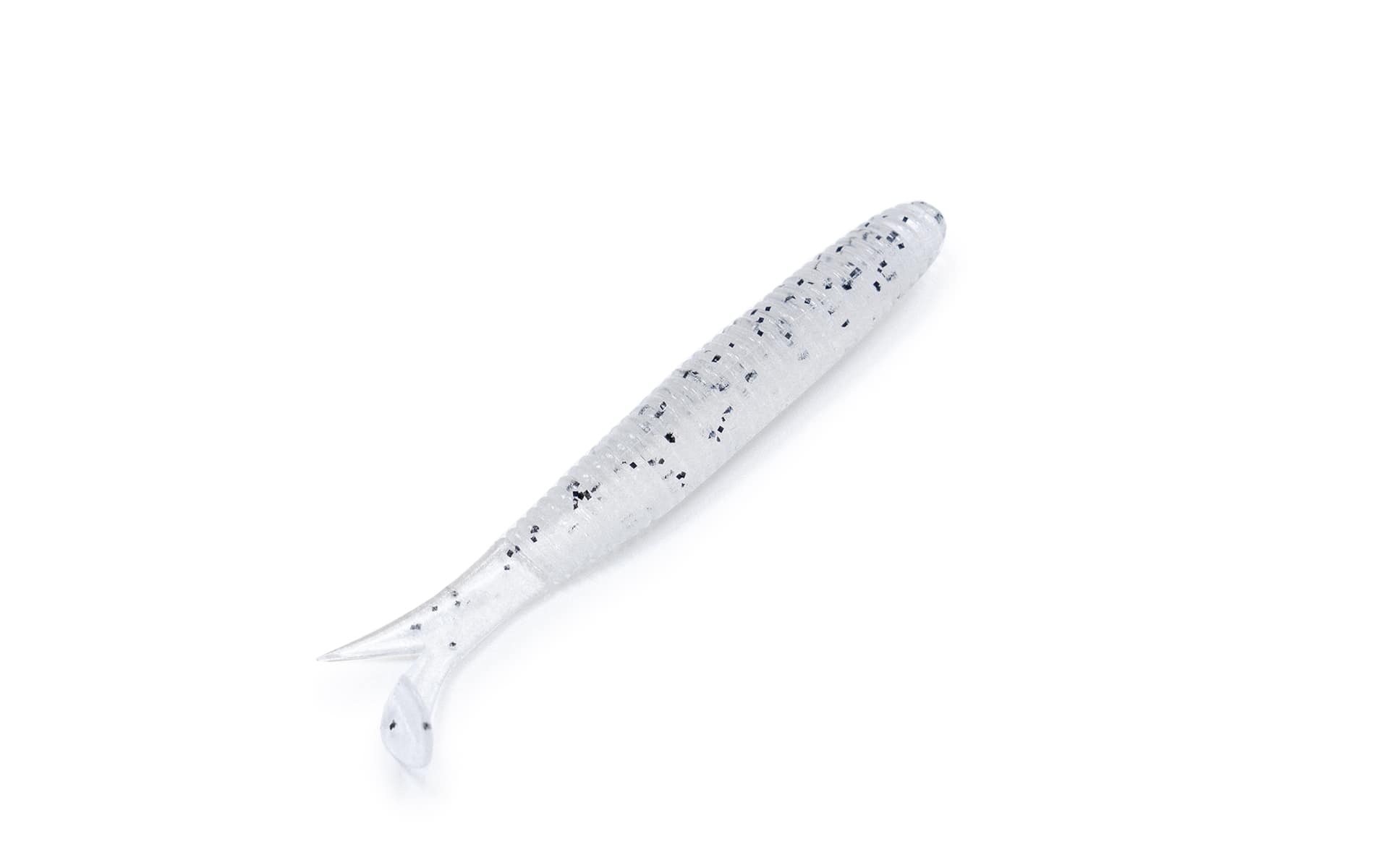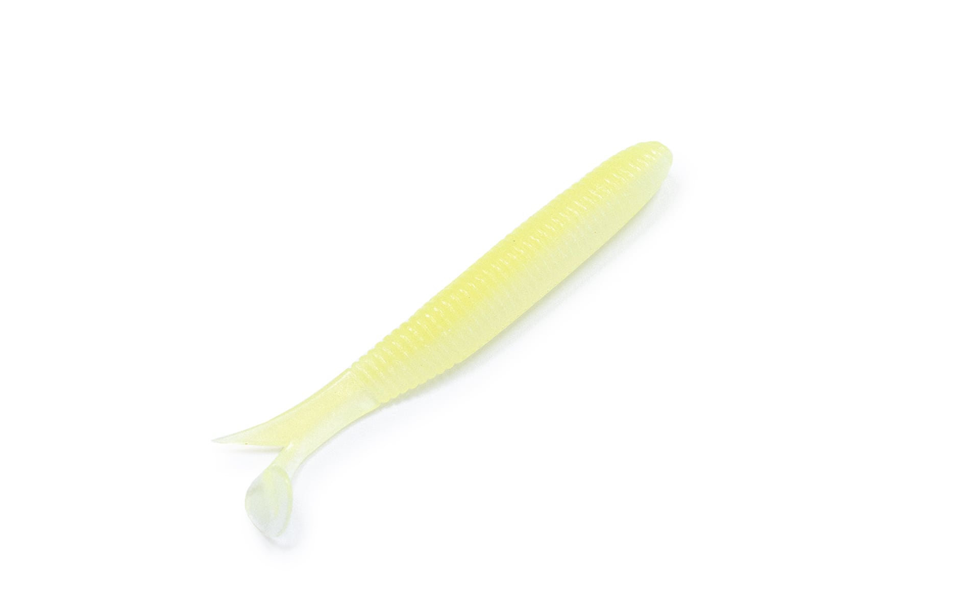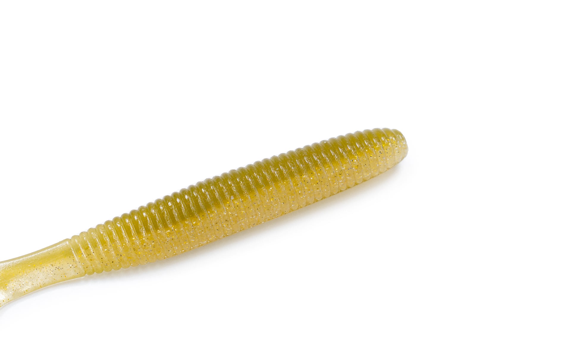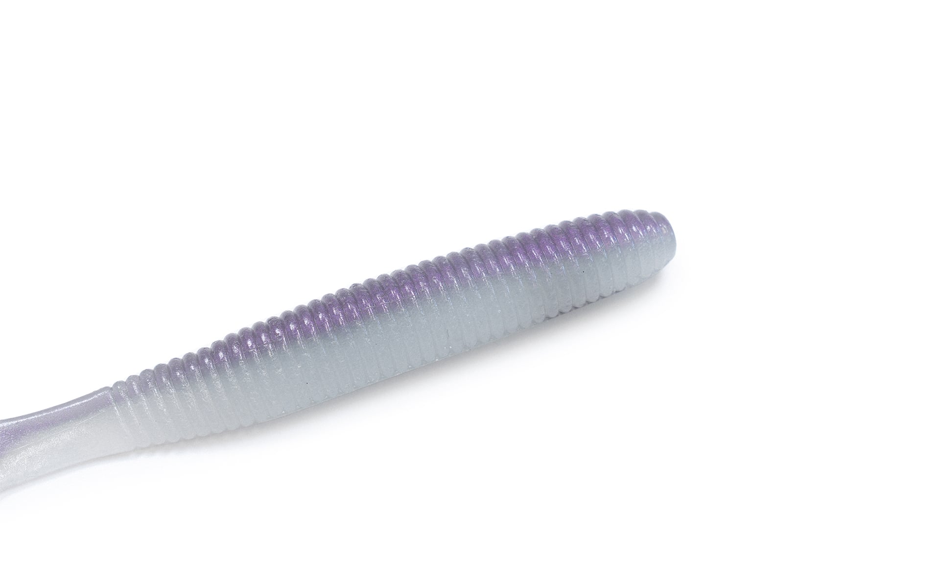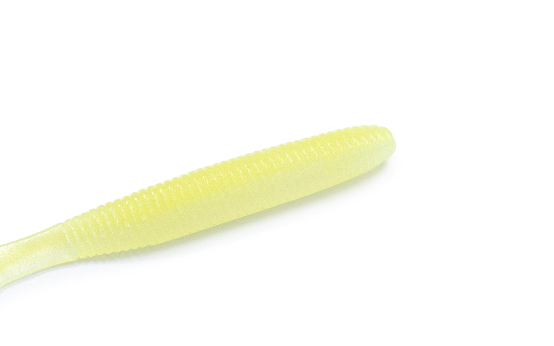 ジグヘッド、ノーシンカー、ウェイテッド。基本巻くだけ。ジグヘッドのシェイクを織り交ぜたスイミングでは後方テールがブレーキとなりロール強で移動距離を抑えてスイミングさせる事が出来ます。耐久性とアクションを考慮した硬度。ワーム単体で10gのウエイトがあり、飛行姿勢を考慮したボディデザインにより飛距離も抜群。チェイス〜最後の喰わせのトリガーとなるVテール+ハイピッチシャッドテール=CRAMPTAIL”痙攣シャッド”でバイトを誘発。
