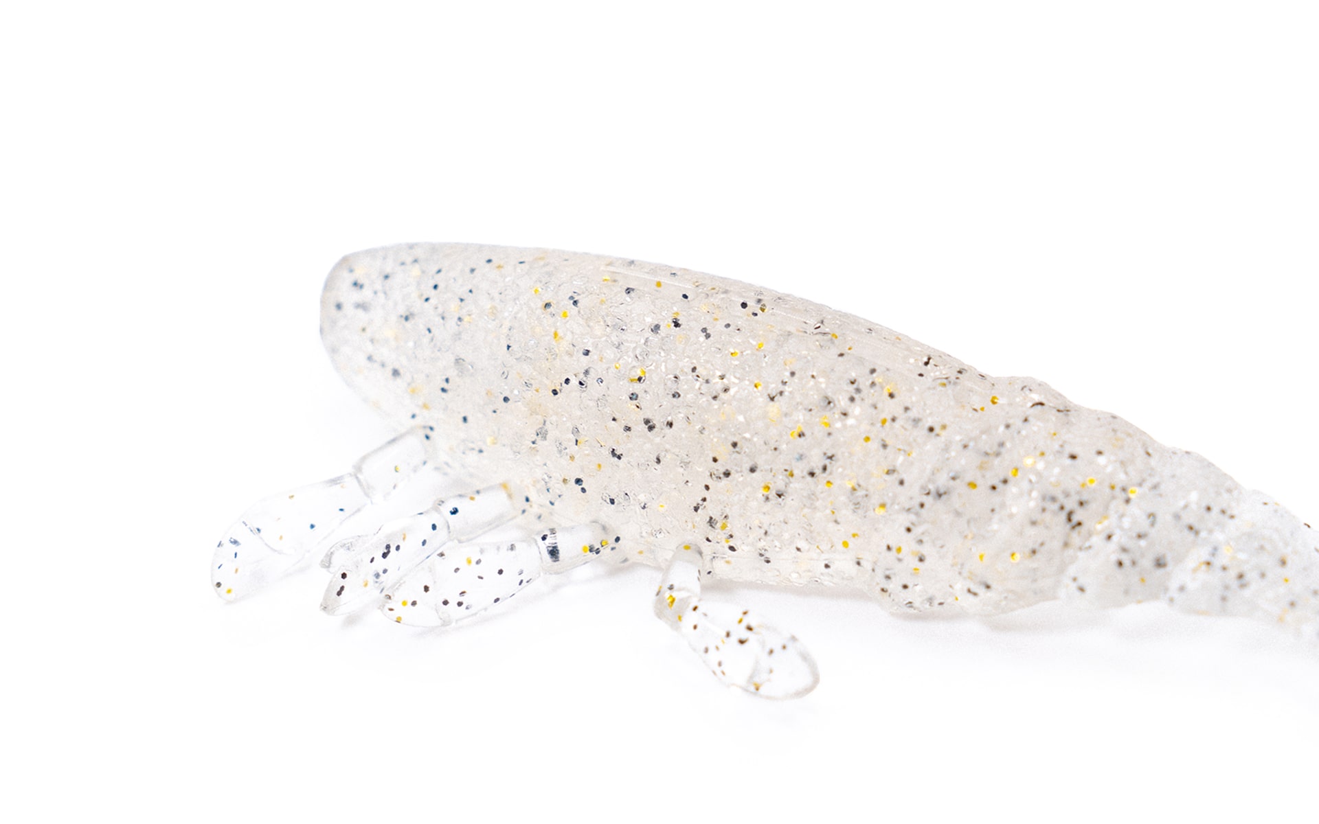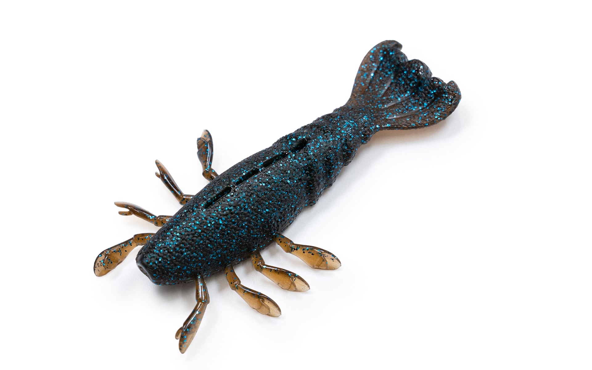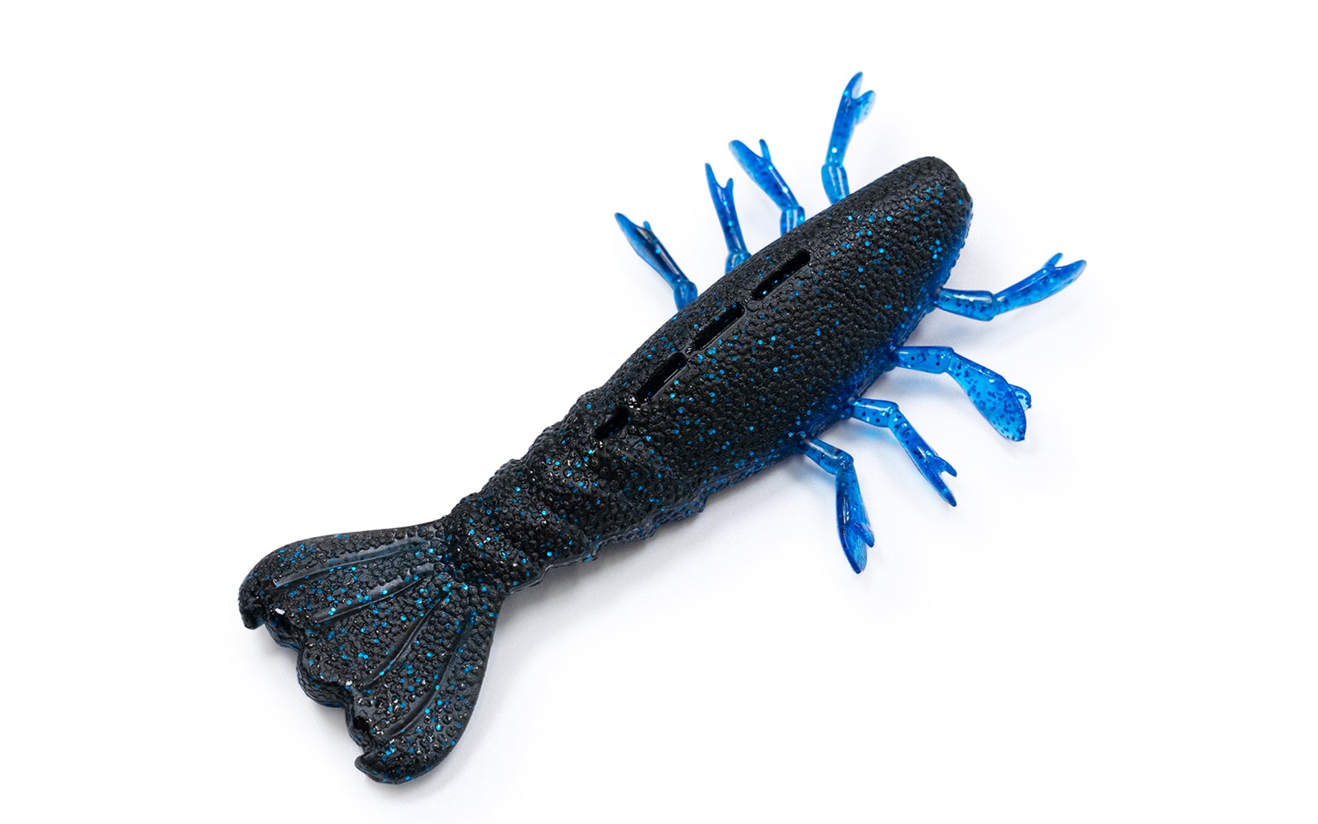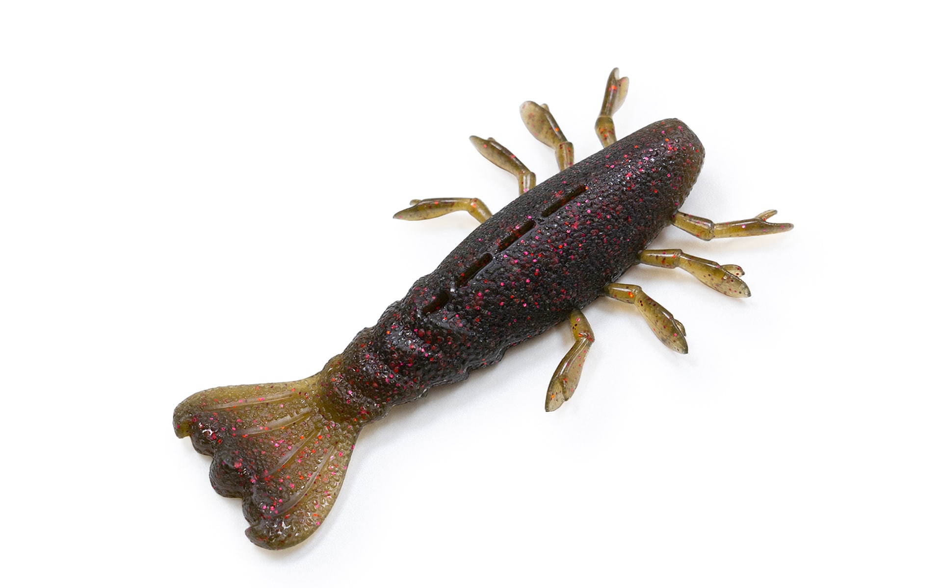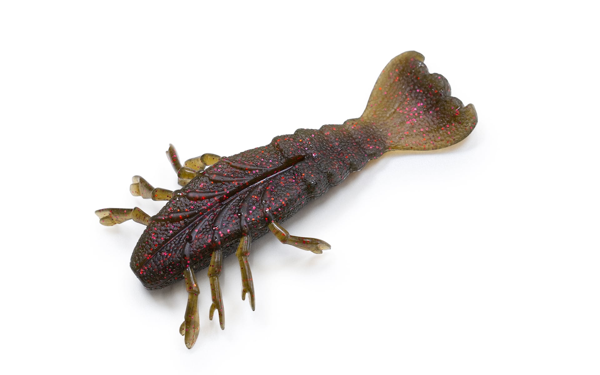 前歩きのクローワーム。本物のザリガニに近づけるためにボディ表面は極力ツヤを抑えた加工を施し、大きな波動を生み出すテール、足パーツは各部が独立して動きやすい形状でピリピリとバスにアピール。春先10℃を超えてくる頃から大活躍の食べ頃サイズのハサミ無しザリガニは約15g。ノーシンカー、ウェイテッド、ジグトレーラー、ヘビダン、ヘビキャロ。