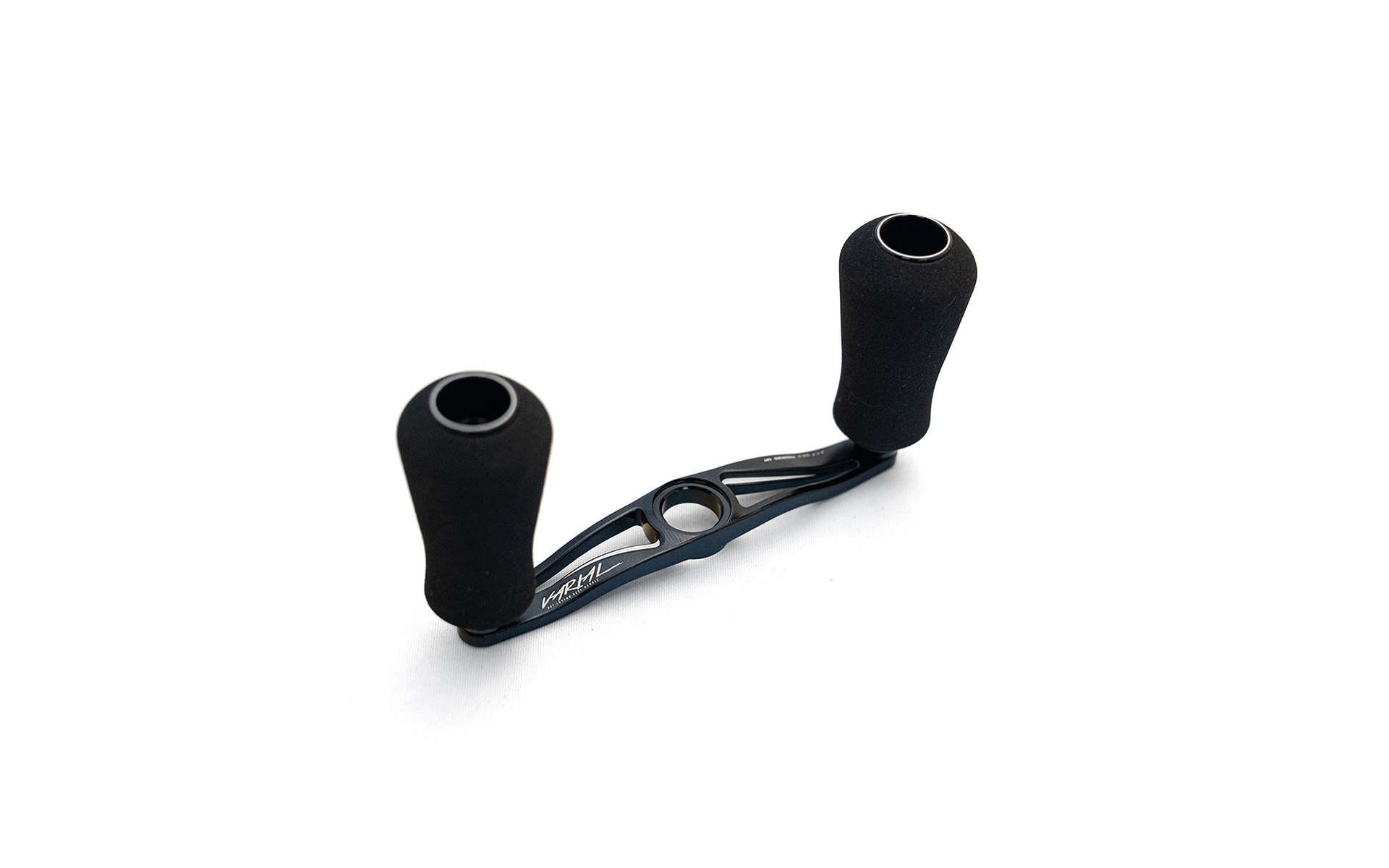 巻き狂いに贈る極上のフィーリング。 3Dマシニング加工を駆使した完全削り出しハンドル。高精度高剛性がもたらす感度とフィーリングは一度使えば病みつきに。標準ルアーの巻き~ビッグベイト、フィネスまで金属素材ならではの感度とハイレスポンス、そしてカバー周りのハイパワーフィッシングにまで対応。ノブは業界初の素材を採用することにより独自のタッチ感と感度を得られ、オプションパーツによるノブ形状~カラーの変更で自分仕様の VARIALを組み上げることが出来ます。強度を必要とするメインプレートにはA7075(超々ジュラルミン)を採用し強さと軽さを両立、ノブ部分はアルミ+樹脂素材を採用し軽すぎない重量配分で巻感を追及。LIVREハンドル方式であるセンターナットは理想的な50:50を実現し、ビッグバス〜怪魚〜ソルトウォーターに至るまで高剛性、高耐久で対応します。ハンドル一回転90cm以上のエクストラハイギアリールをメインにしたハンドル。ビッグベイトをリーリングワークで操作するような釣りに最適。100mmという長さがエクストラハイギアの巻き抵抗を軽減する。