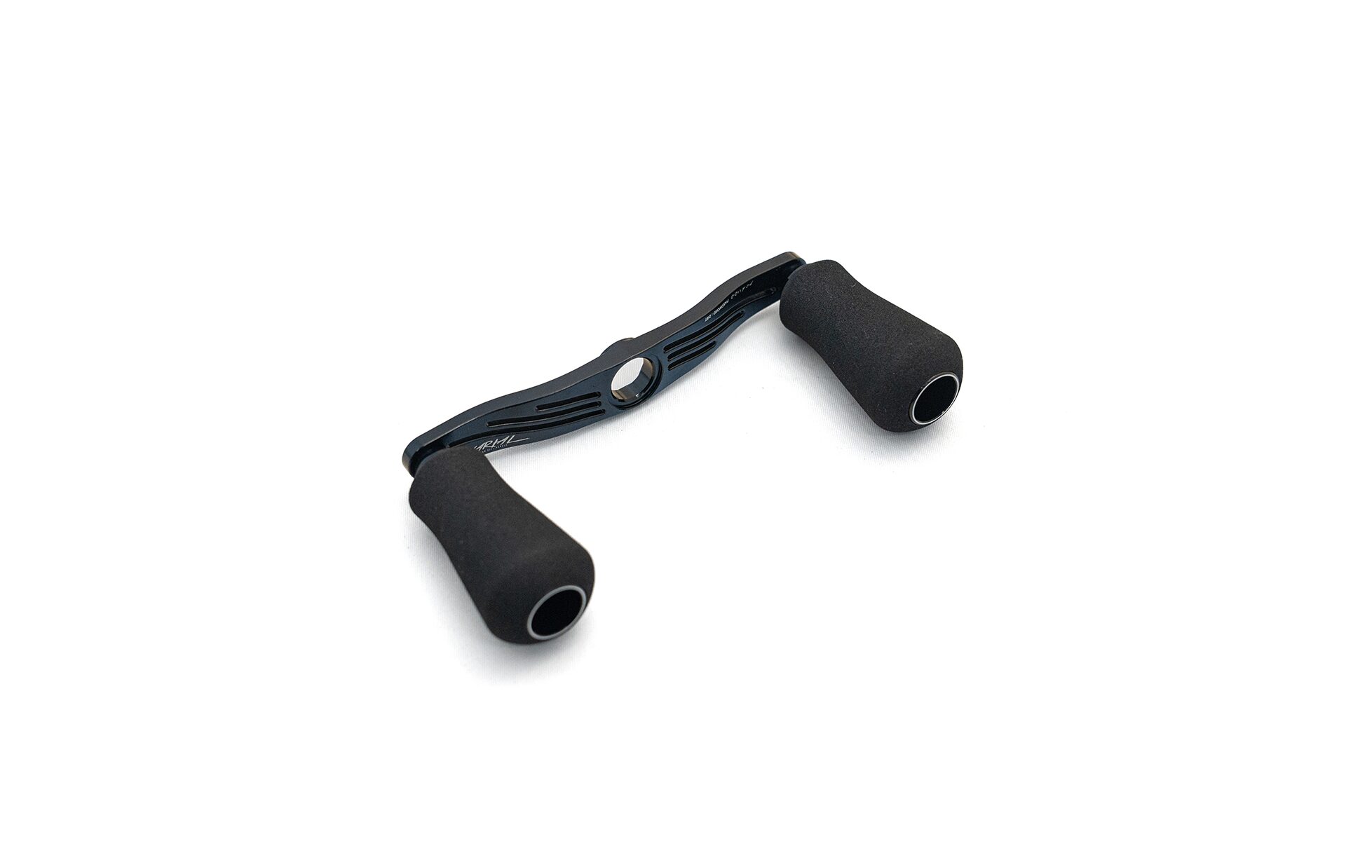 巻き狂いに贈る極上のフィーリング。 3Dマシニング加工を駆使した完全削り出しハンドル。高精度高剛性がもたらす感度とフィーリングは一度使えば病みつきに。標準ルアーの巻き~ビッグベイト、フィネスまで金属素材ならではの感度とハイレスポンス、そしてカバー周りのハイパワーフィッシングにまで対応。ノブは業界初の素材を採用することにより独自のタッチ感と感度を得られ、オプションパーツによるノブ形状~カラーの変更で自分仕様の VARIALを組み上げることが出来ます。強度を必要とするメインプレートにはA7075(超々ジュラルミン)を採用し強さと軽さを両立、ノブ部分はアルミ+樹脂素材を採用し軽すぎない重量配分で巻感を追及。LIVREハンドル方式であるセンターナットは理想的な50:50を実現し、ビッグバス〜怪魚〜ソルトウォーターに至るまで高剛性、高耐久で対応します。アメリカのスイムベイターからの要望で開発されたロングハンドル。スイムベイトをローギアリールでスローロールさせるような釣りに最適。